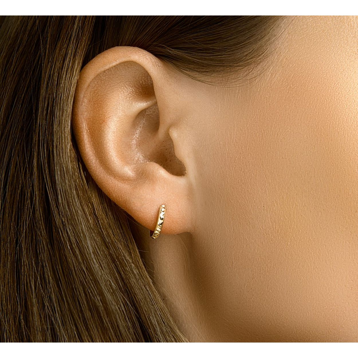 14k Geelgouden gediamanteerde klapoorringen. De oorringen hebben een afmeting van 10.5x2mm.