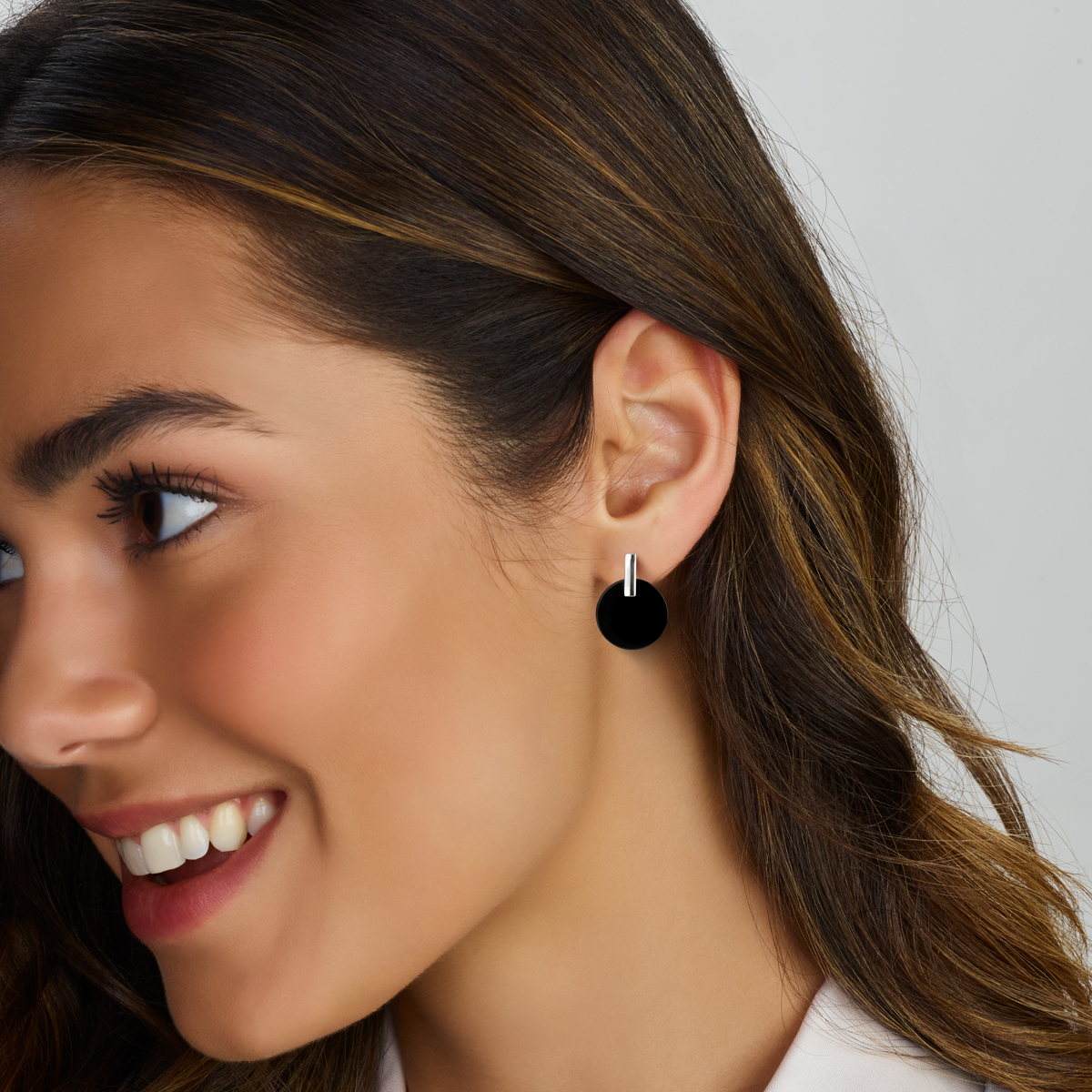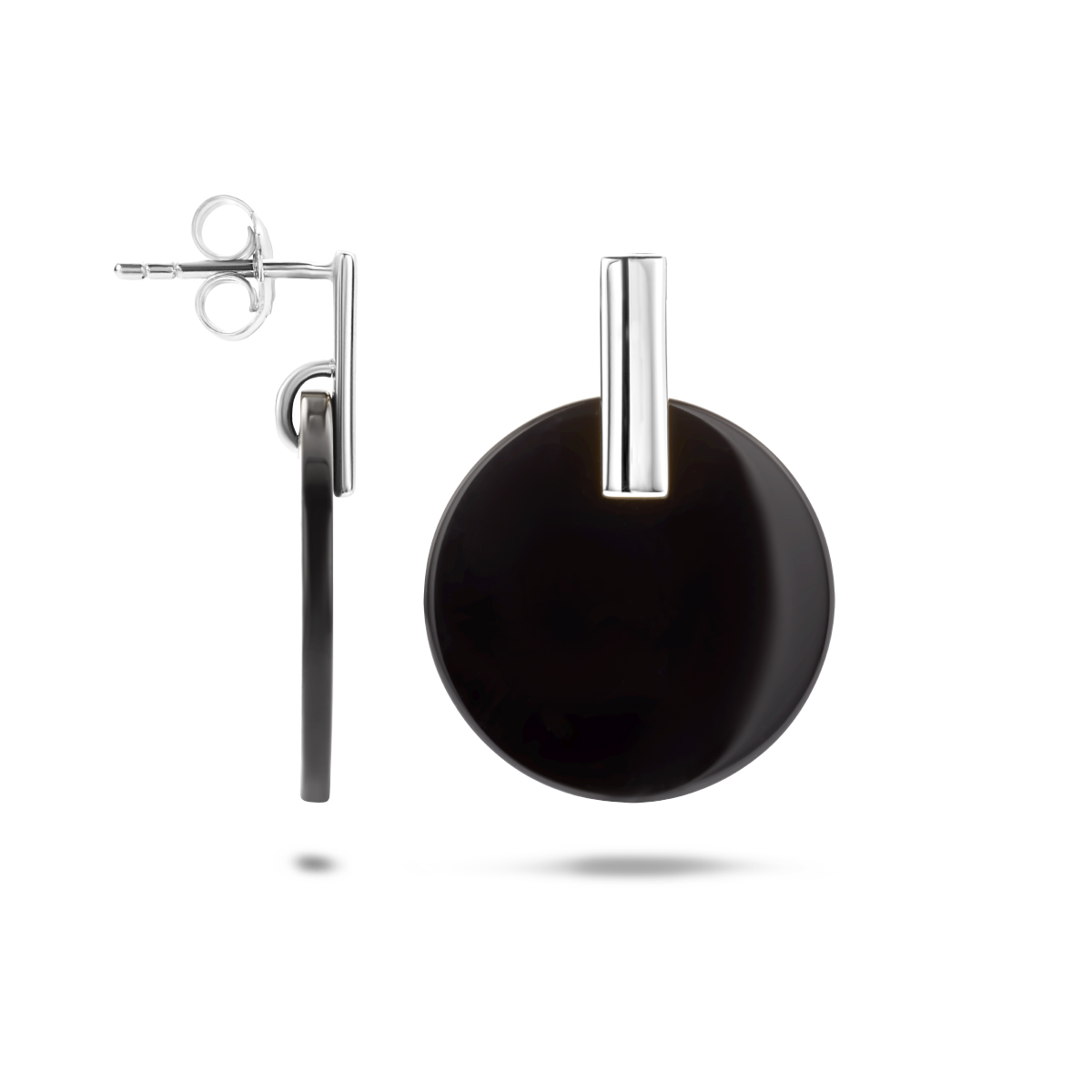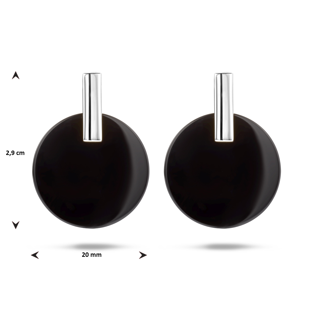 Gerhodineerd 925 zilveren oorhangers uitgevoerd met onyx. De oorhangers hebben een totale hoogte van 2.9cm.