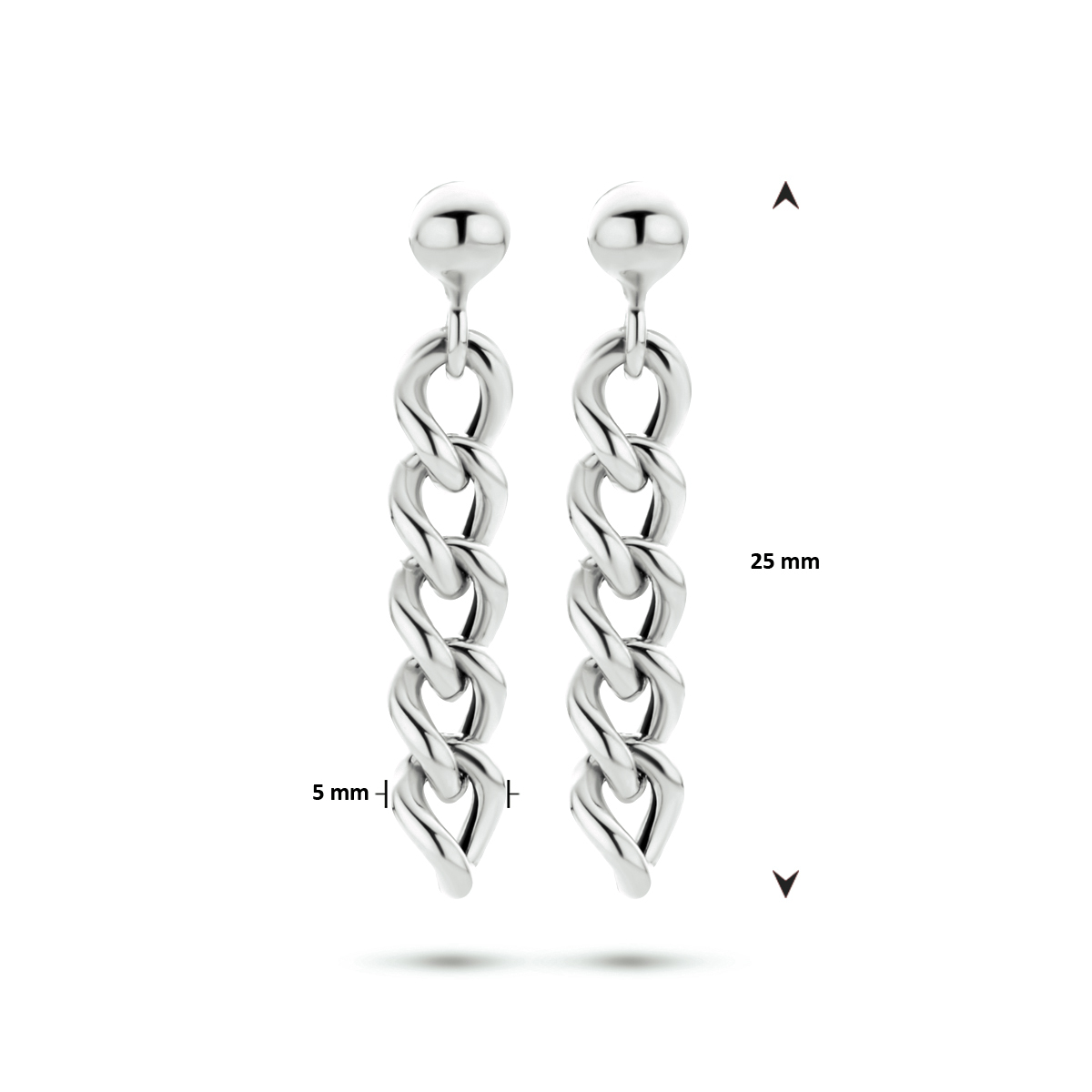 Gerhodineerd 925 zilveren oorhangers uitgevoerd in schakelvorm. De oorhangers hebben een hoogte van 25mm en een breedte van 5mm.