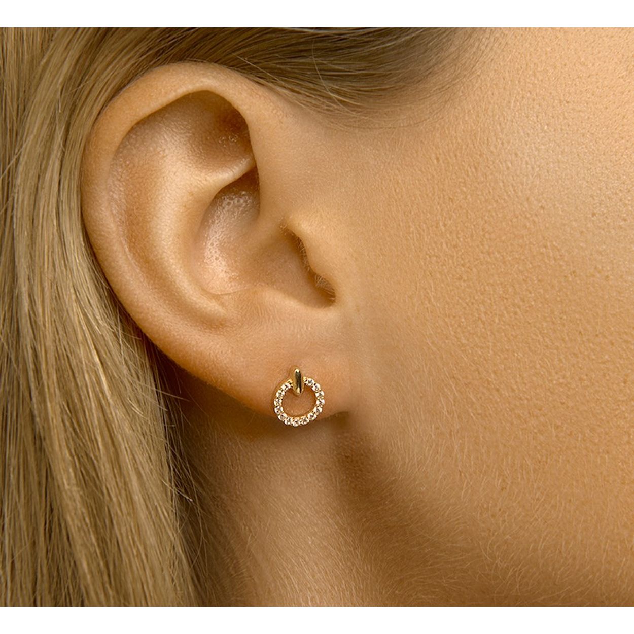 14k Geelgouden oorknoppen uitgevoerd met een schitterende zirkonia rij. De oorknoppen hebben een afmeting van 10x8mm.