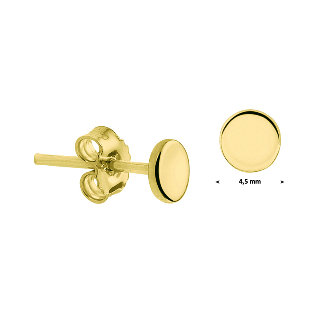 Verguld op zilveren oorknoppen met een diameter van 4.5mm in de vorm van een rondje. Deze oorknoppen zijn ook verkrijgbaar in verguld op zilver of rhodium. Geen garantie op plating.