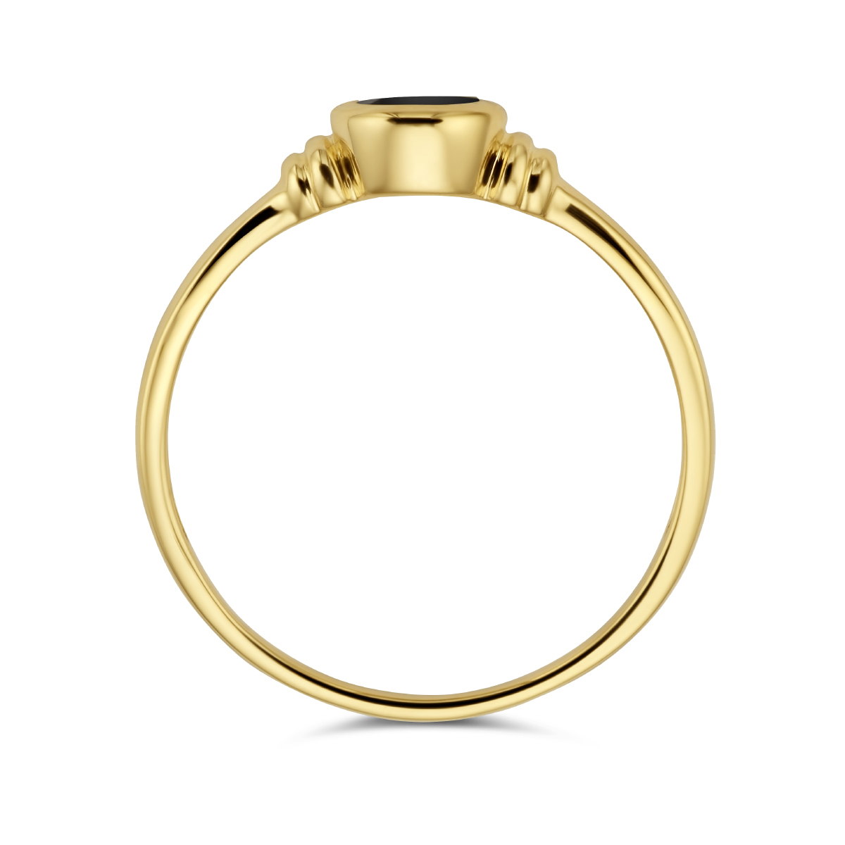14k Geelgouden ring uitgevoerd met onyx. De ring heeft een breedte van 6.5mm.