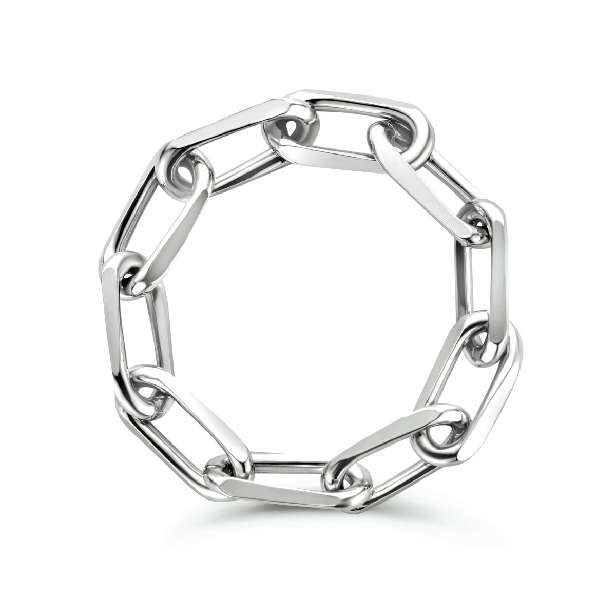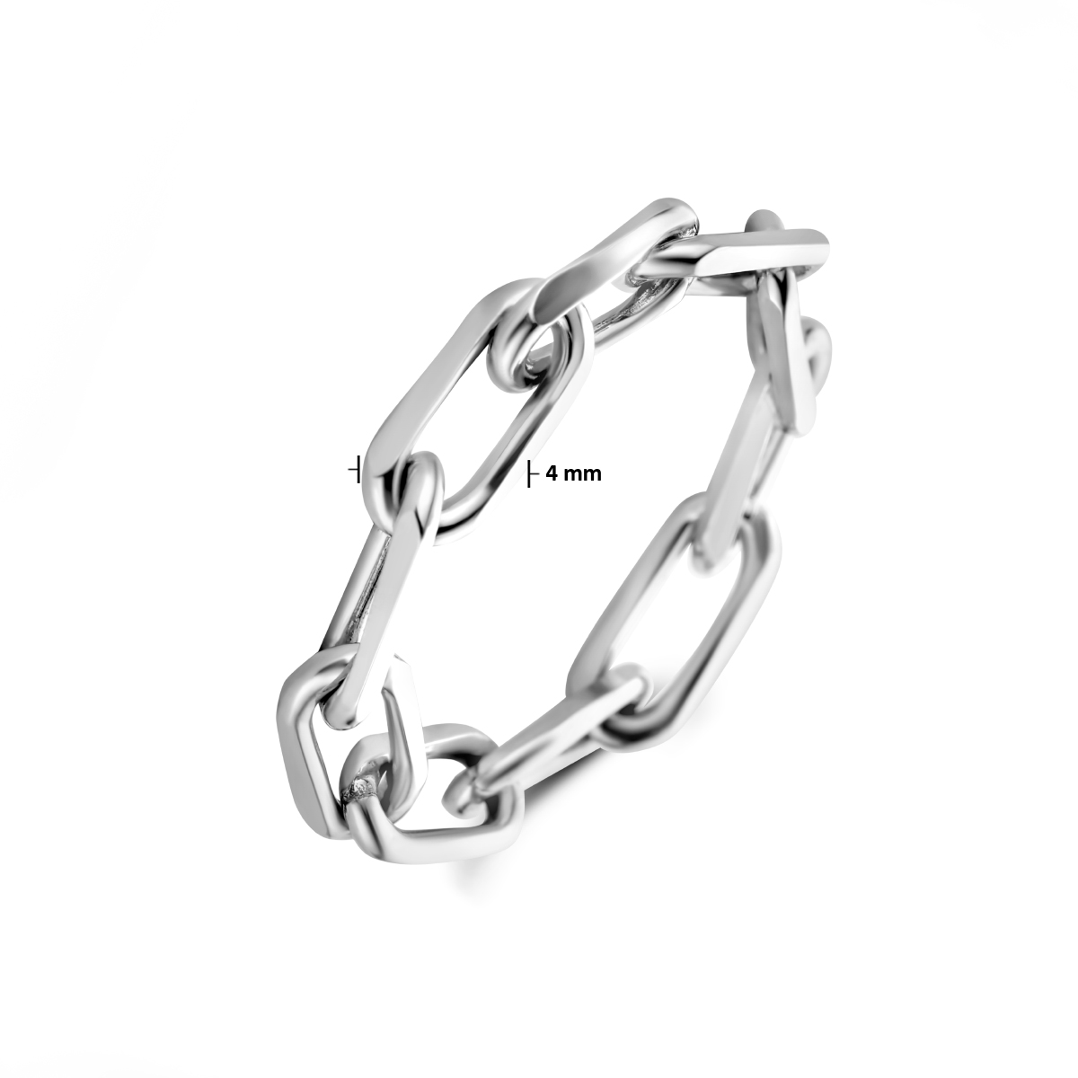 Flexibele 925 gerhodineerd zilveren ring. De ring heeft een breedte van 4mm.