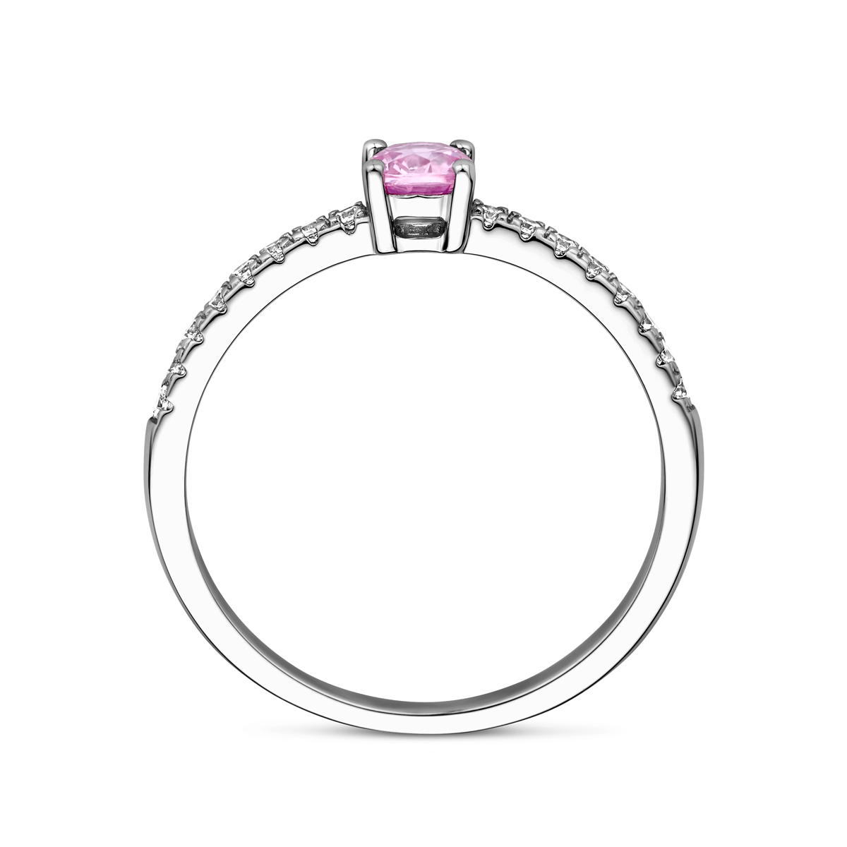 Gerhodineerd 925 zilveren ring uitgevoerd met witte en roze zirkonia. De ring heeft een breedte van 4mm.