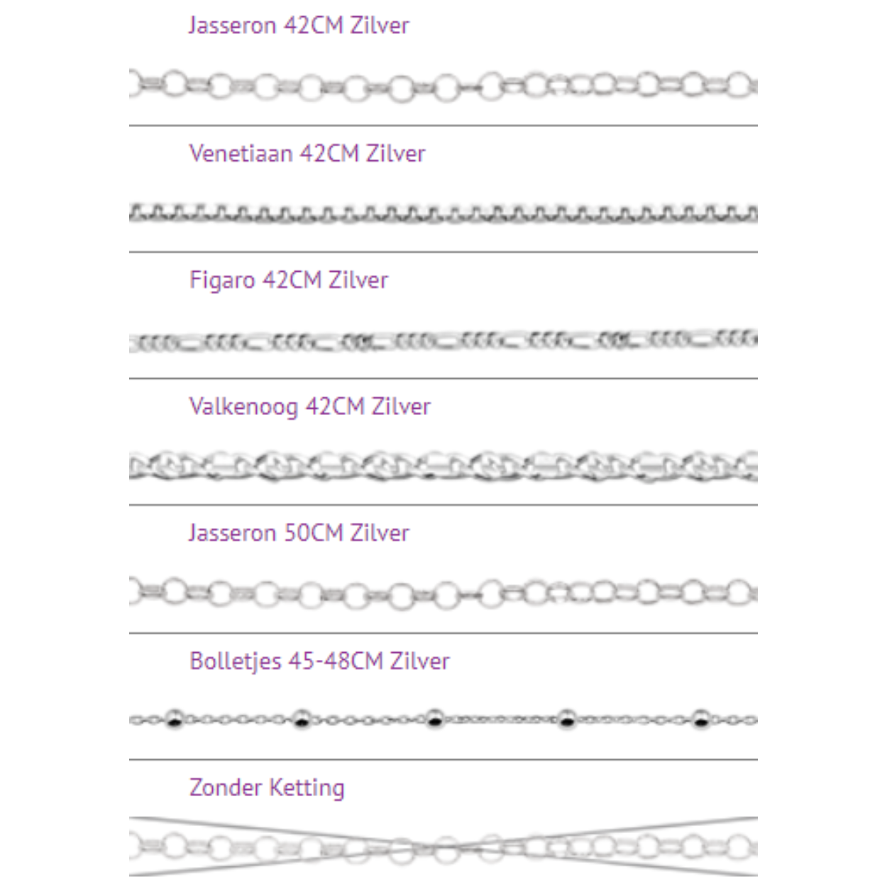 Kies welke naam jij wilt voor dit persoonlijke sieraad (tot een maximum van twaalf tekens). In dit model is een naam van vijf letters ca. 16 mm hoog en 34 mm breed. De maat is slechts ter indicatie. De naam is in te vullen bij 'opmerkingen' in het betaaloverzicht.
